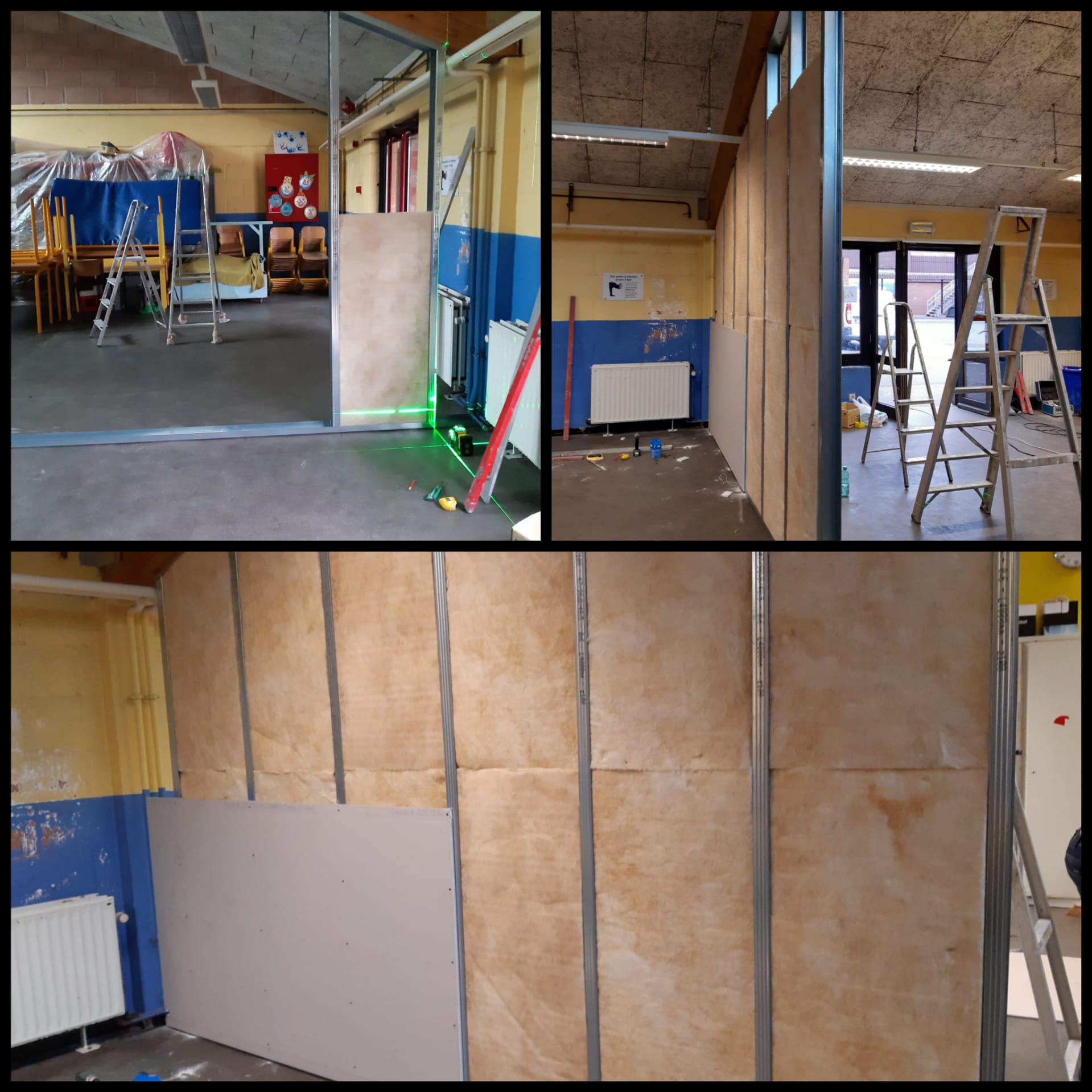 Grâce à la générosité d’une chouette équipe de parents, des travaux ont été réalisé afin de scinder le local « garderie » et créer une nouvelle classe dans cet espace.